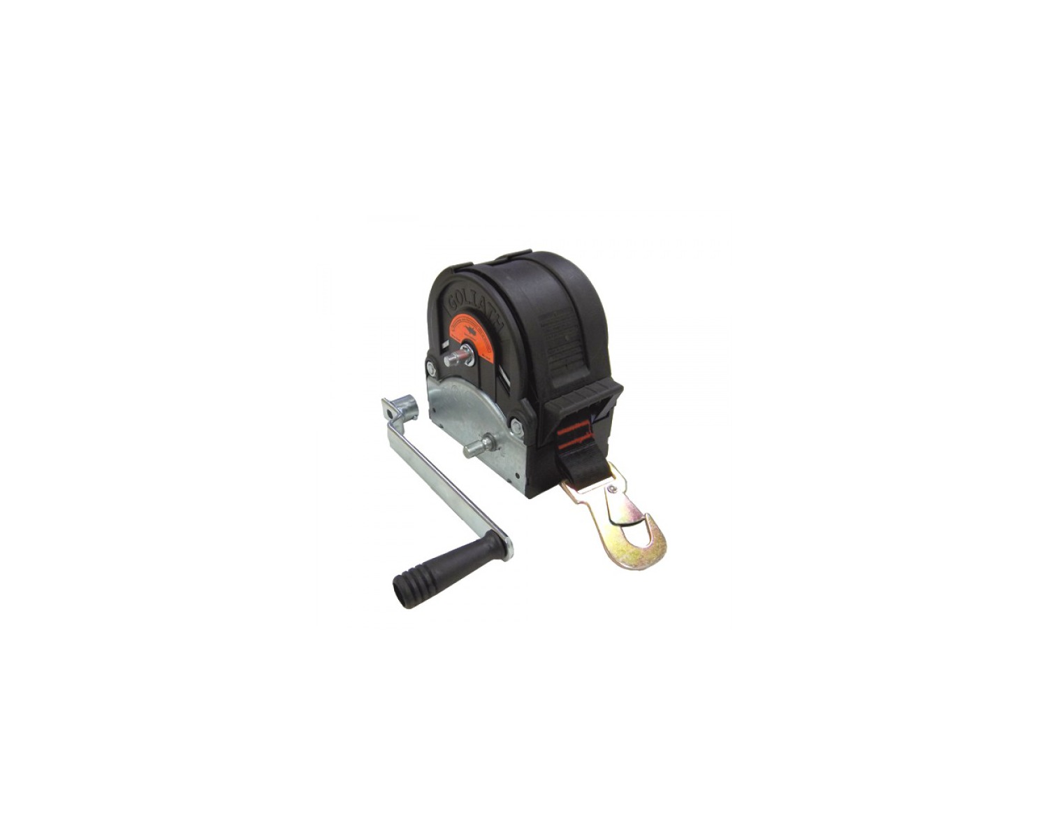 Le système de sécurité peut être débrayé pour faciliter le déroulement libre de la sangle hors charge. Le treuil Goliath@ série TS est fourni complet avec sangle et crochet.