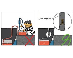 Les prix des carburants augmentent de plus en plus, et le risque de vol de carburant à bord de votre bateau augmente également. Ce genre de vol pourra être évité avec l'installation d'un Antivol de Carburant de VETUS. Ce que nous proposons n'est pas d'avoir des nables de pont fermant à clé, ou des serrures séparées qui vont rouiller à l'intérieur en un rien de temps, mais une solution qui empêche qu'un tuyau à siphon puisse être introduit dans le réservoir par le tuyau de remplissage.