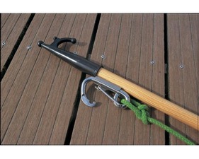 Mousqueton et fixation pour gaffe. Permet de crocheter la bouée de mouillage et de fixer l'amarre directement avec la gaffe.