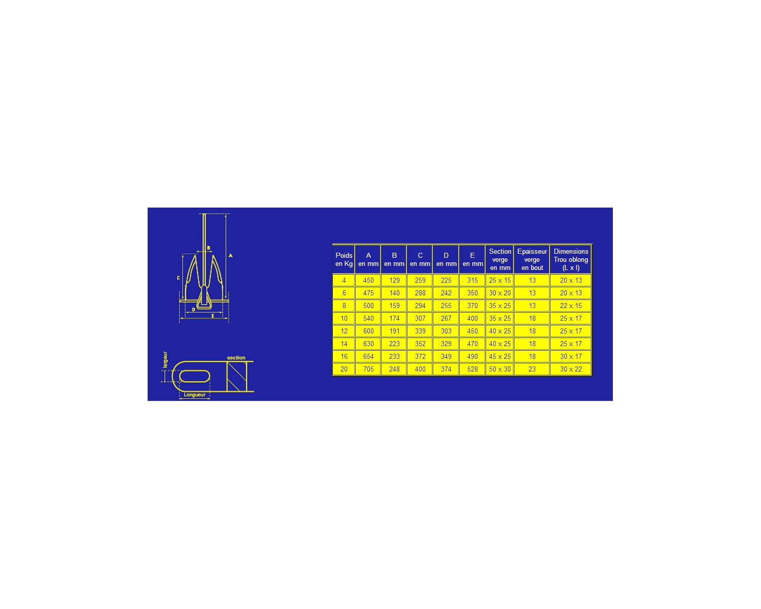Ancre dédiée à la Plaisance, conçue pour tout type de navire (Voile, moteur, catamarans…).