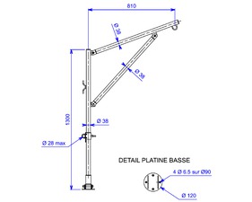 Mât de charge pivotant et repliable en INOX316 Poli.