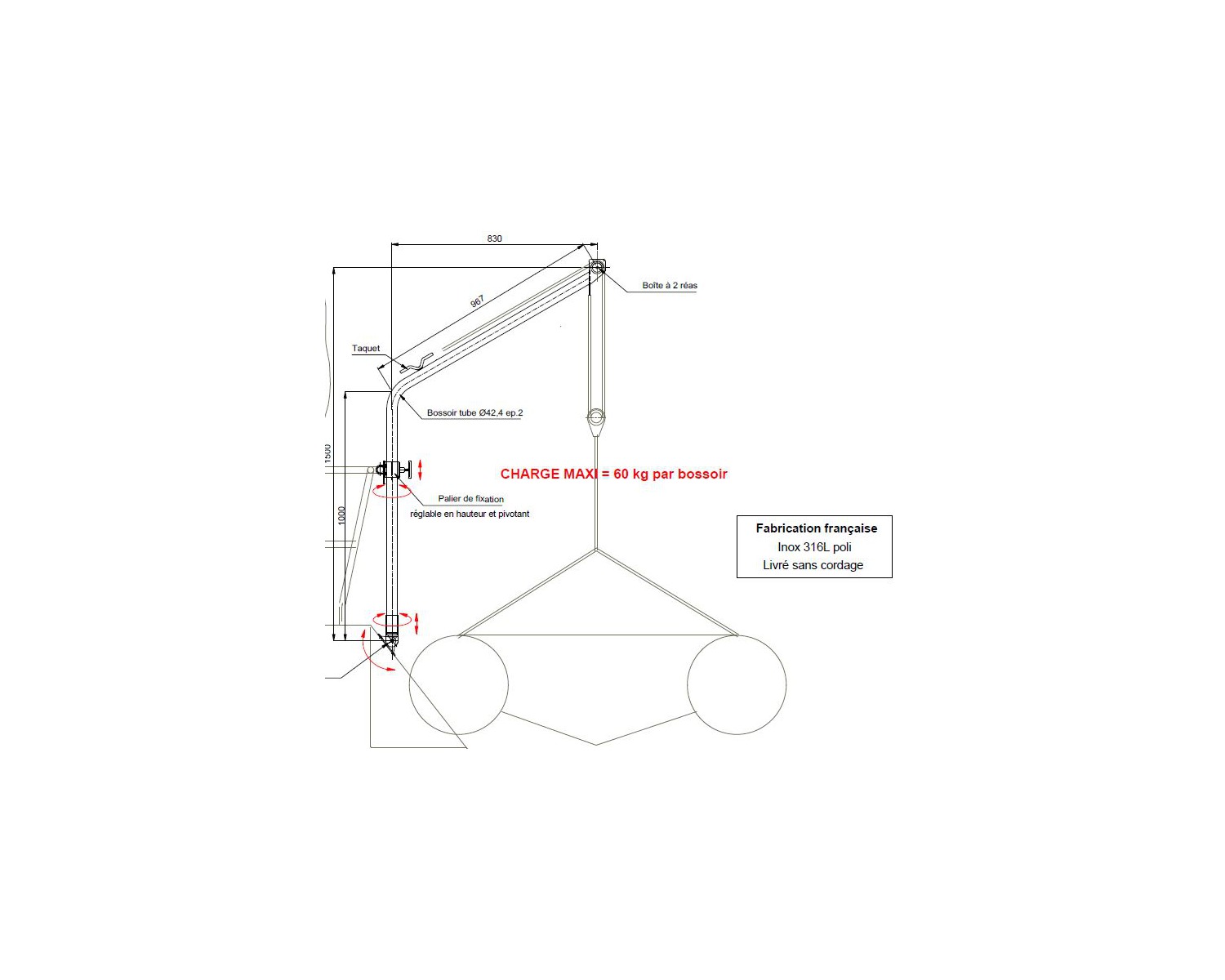 Possibilité d'être utilisé par paire (bossoir), pour une capacité de charge de 120 Kg.
