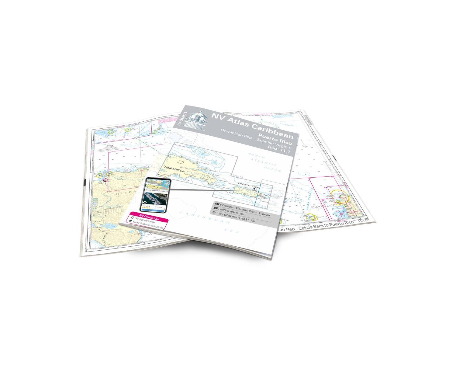 Cartes nautiques de la République dominicaine jusqu'à Puerto Rico. 5 cartes générales, 15 cartes côtières et 17 cartes détaillées sont inclus. Taille 30x42cm, forme liée en atlas. En langue anglaise. L'ensemble comprend un code de téléchargement pour toutes les cartes de la région en digitale. Les cartes numériques peuvent être utiliser pour 365 jours sur notre application NV Charts avec un smartphone et une tablette (Apple, iOS/MacOSX, Android, Windows 7/8).