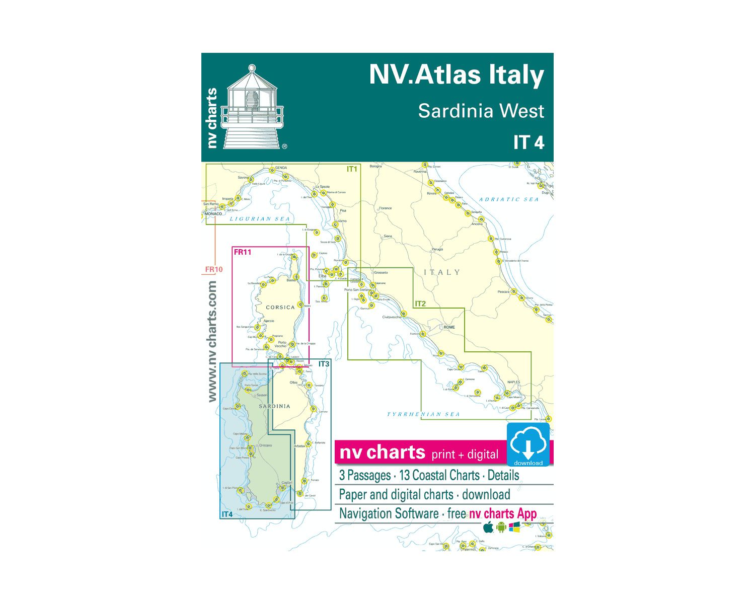 NV Charts Atlas Ouest de la Sardaigne | Version numérique incluse