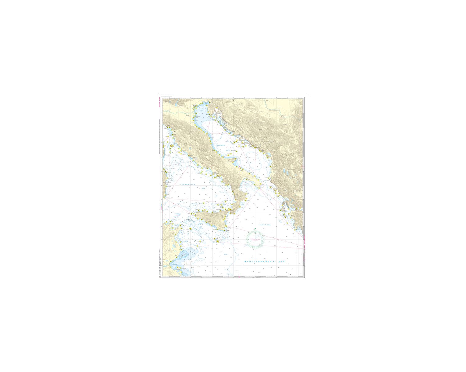 Le Pilot 3 couvre la mer Tyrrhénienne, l‘Adriatique, la mer Ionienne et la région entre la Sicile jusqu’à la côte de la Tunisie dans une échelle de 1: 1,75 Mio.