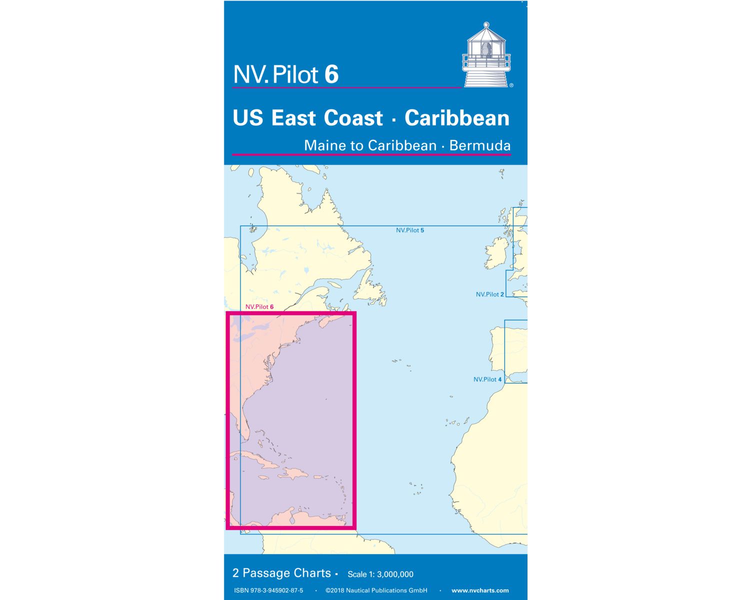Le Pilot 6 couvre la côte Est des US de Nova Scotia à Miami ainsi que les Bermudes. Echelle: 1:3,0 Mio. En recto, les Caraïbes avec les Bahamas, les Antilles,
