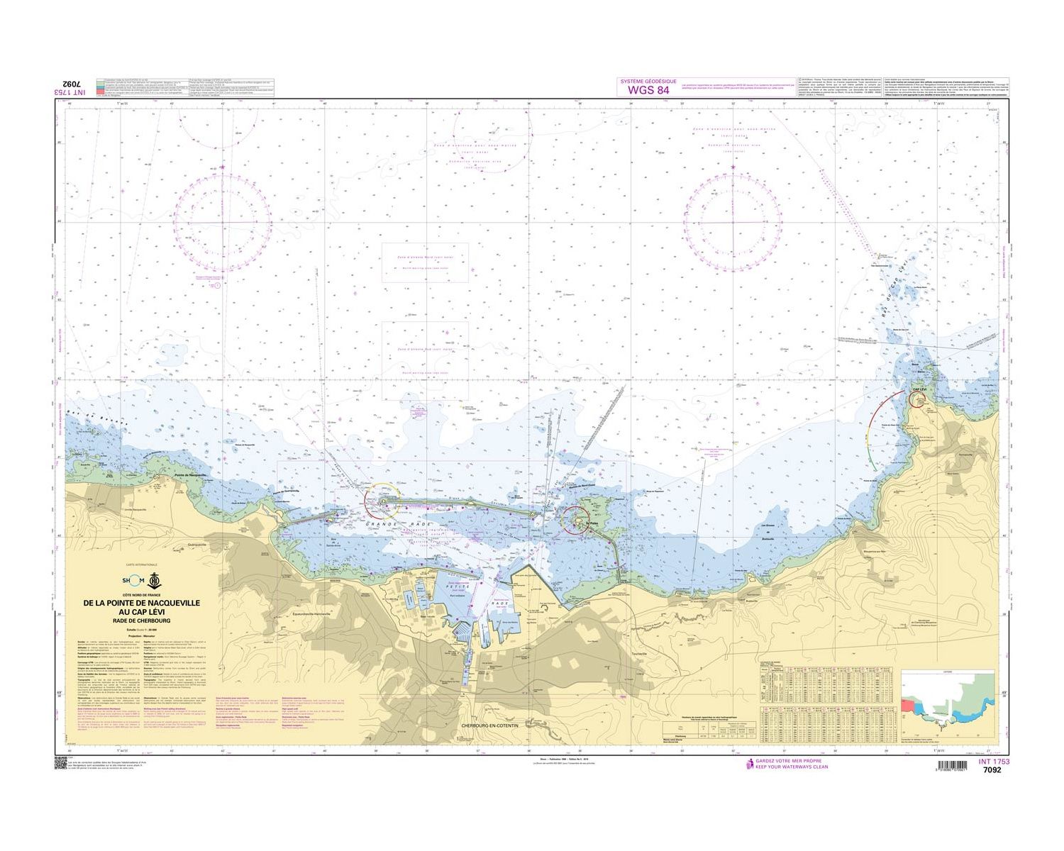 La carte marine officielle française 7092 du Shom est une carte marine de la region INT 1753 De la Pointe de Nacqueville au Cap Lévi.