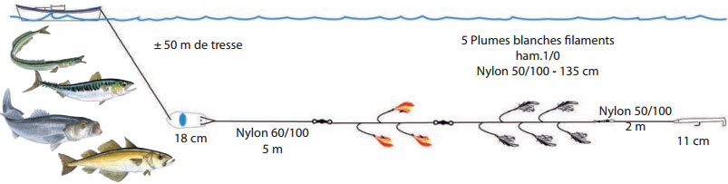 Traîne tout venant | Idéal pour pêche au bar, lieu, orphie et maquereau