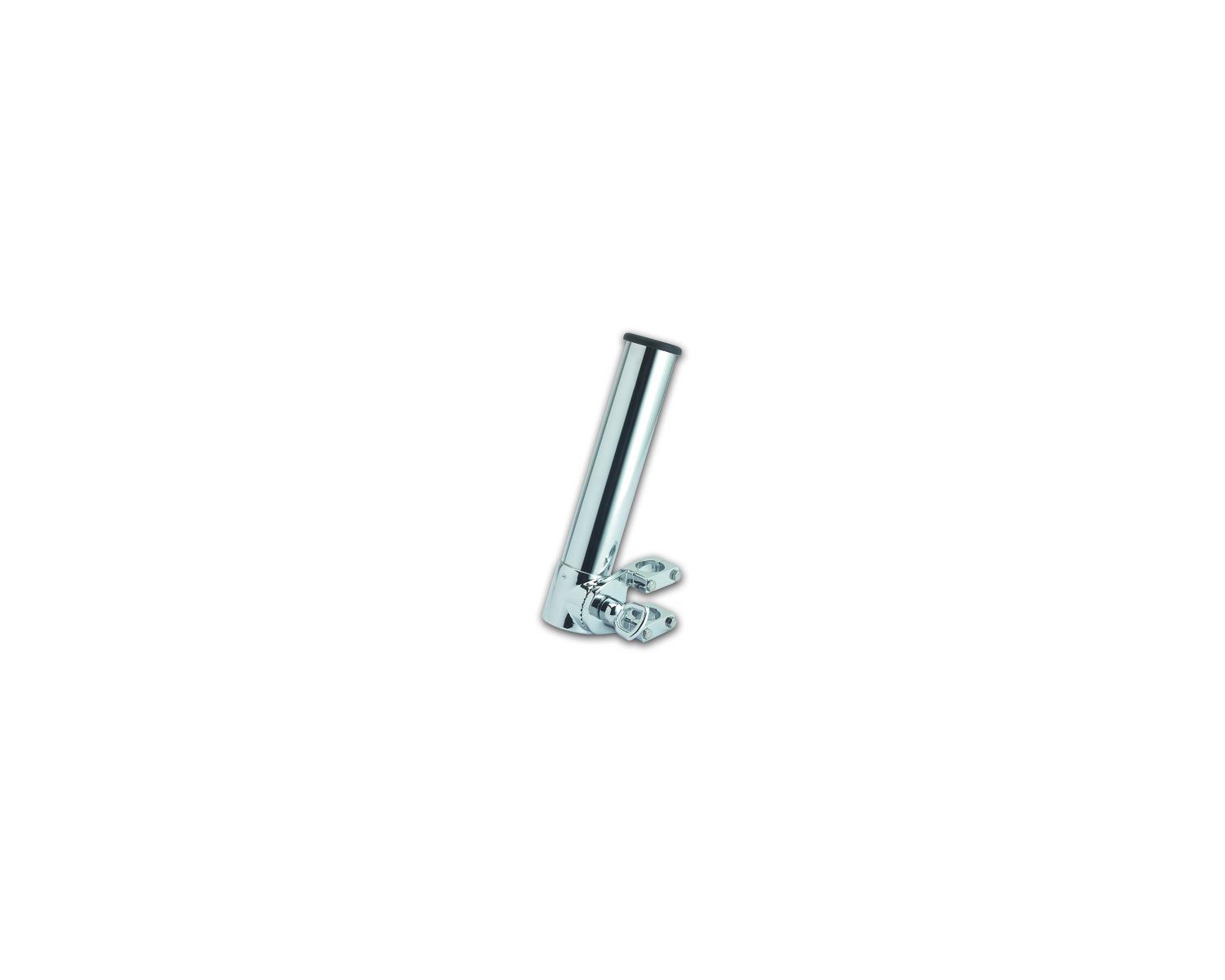 Porte canne à pêche en laiton chromé. Réglable, fixation chandelier ø22 à 30 mm.