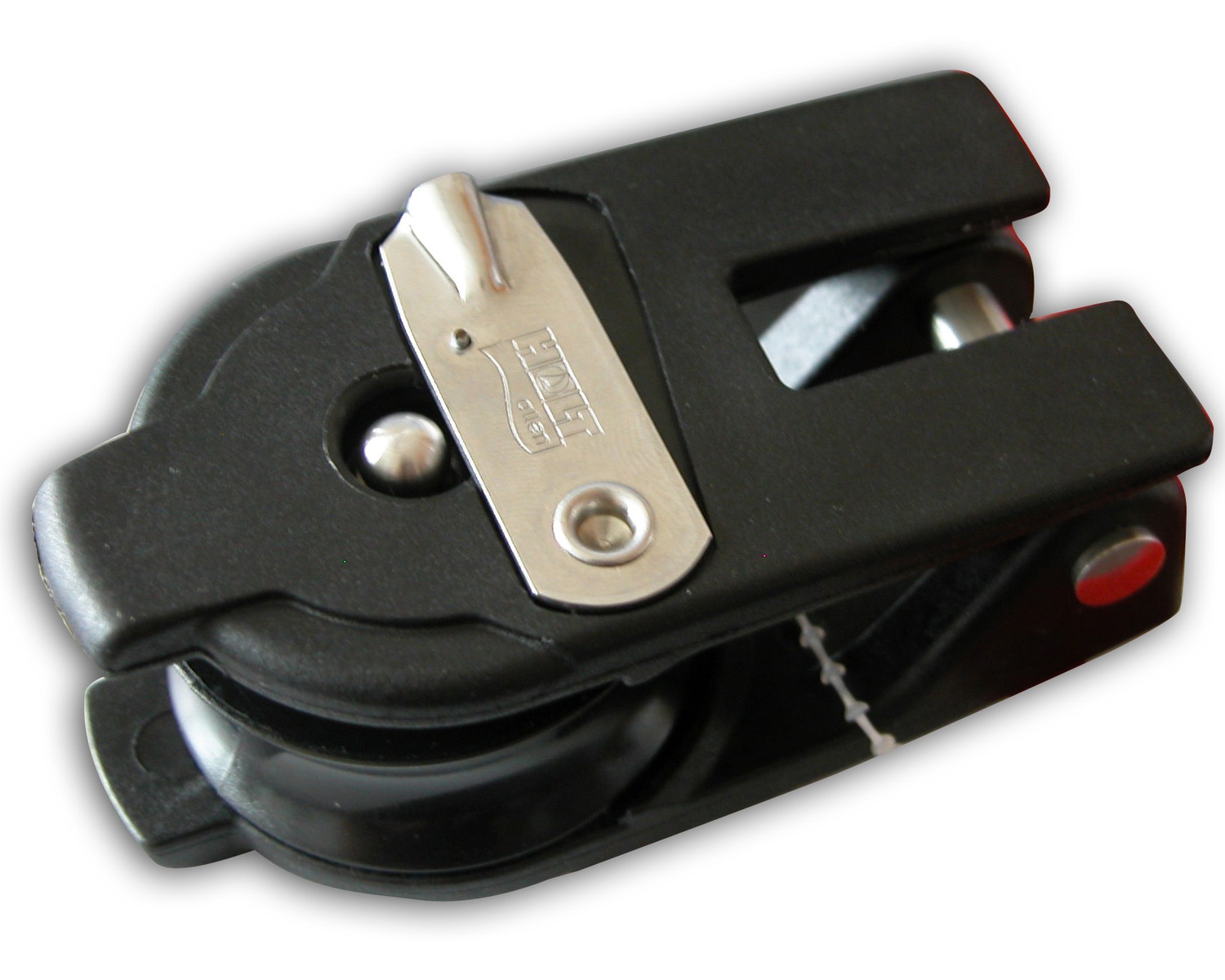 Poulie ouvrante réa Ø40mm pour cordage de 8/10mm. Permet de rajouter une poulie sur un cordage sous tension. Idéal pour l'utilisation d'une short sheet (écoute courte)