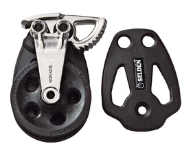 Poulie Double plat-pont à friction avec bloqueur, en composite , ø Réa 80 mm, ø Cordage max 16 mm, rupture 4000kg.