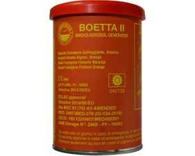 Fumigène flottant provoquant une fumée dense orange pendant 3 minutes. Péremption: 3.5ans.