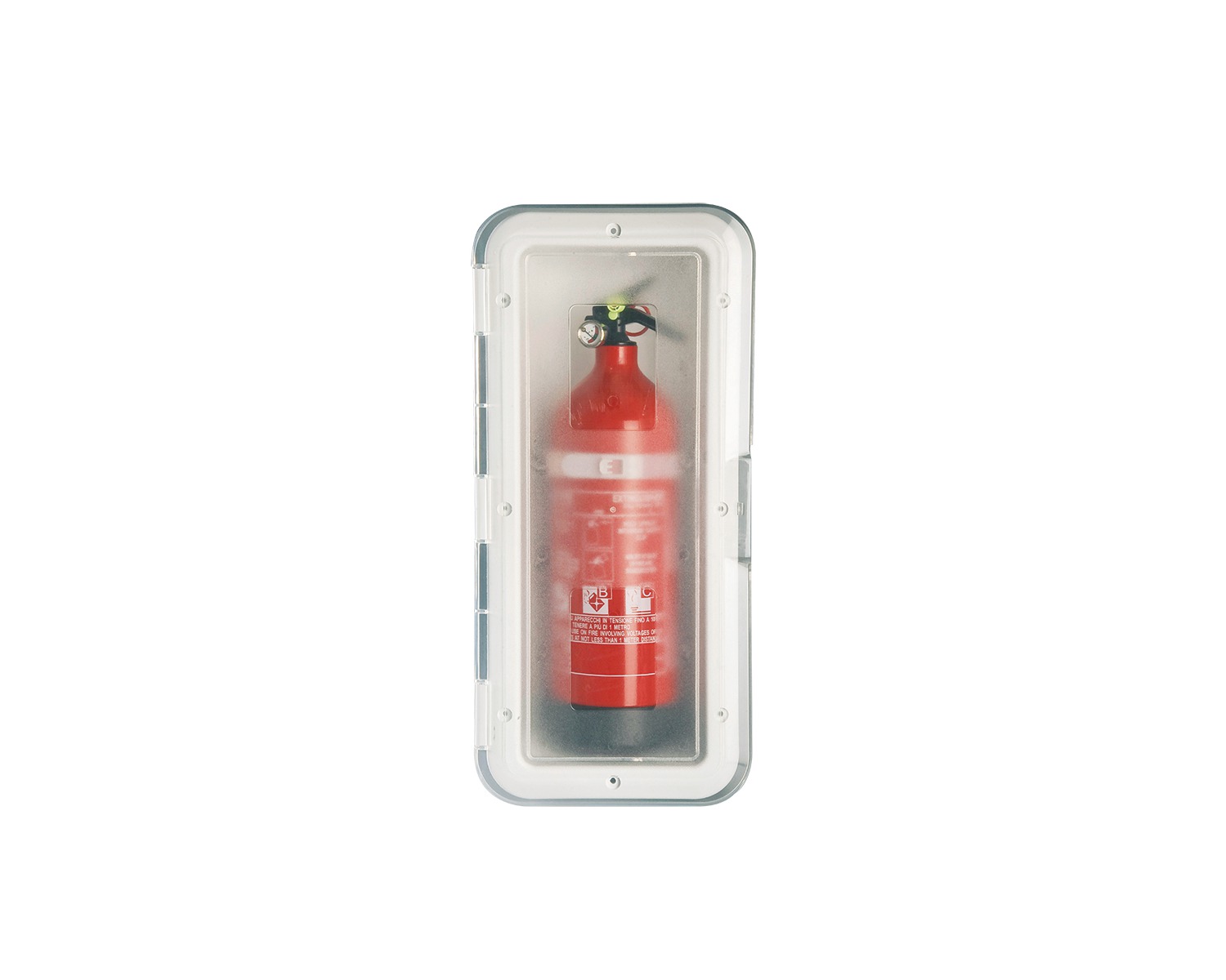 Boite encastrable pour extincteur. Permet le stockage d'un extincteur dans le cockpit ou sur une console d'open. Conforme à la division 240.