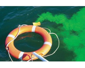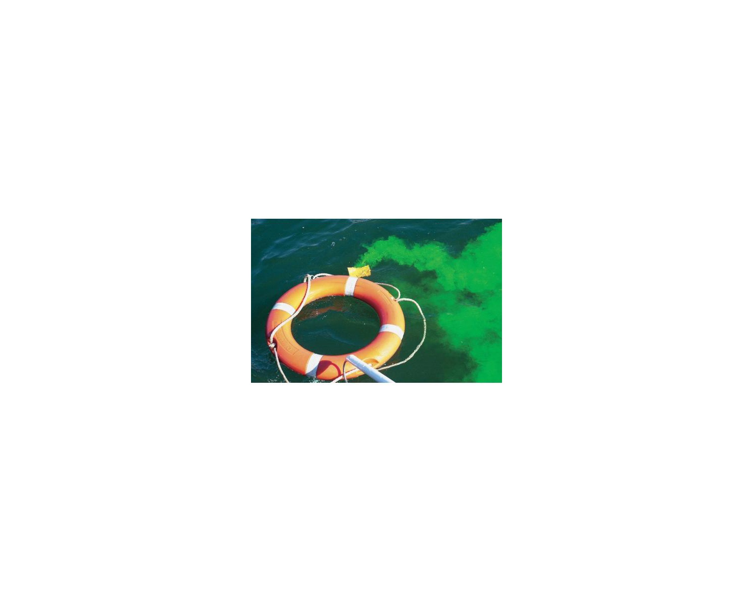 Poudre colorant l'eau. elle facilite le repérage du naufragé, de jour comme de nuit depuis un navire, un avion ou un hélicoptère. Visible par temps clair jusqu'à 10 km par avion, elle reste visible plusieures heures.