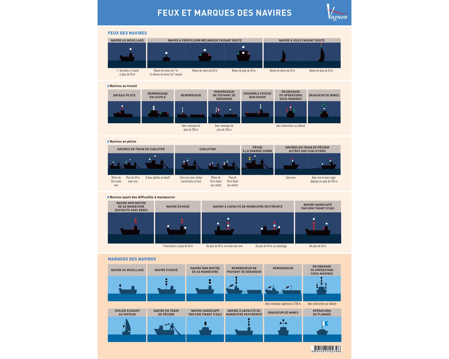 5 planches adhésives sur les feux et marques de navires