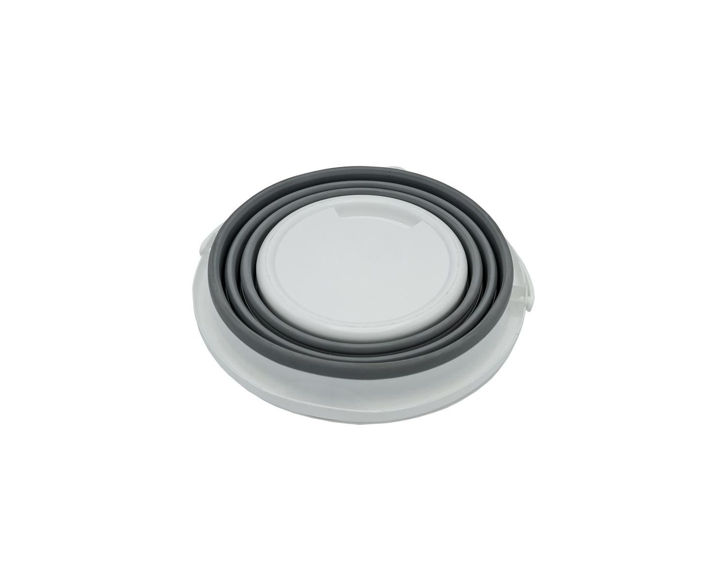 Avec ses couleurs neutres, blanc et gris, le seau pliant s'adapte à tous les intérieurs.