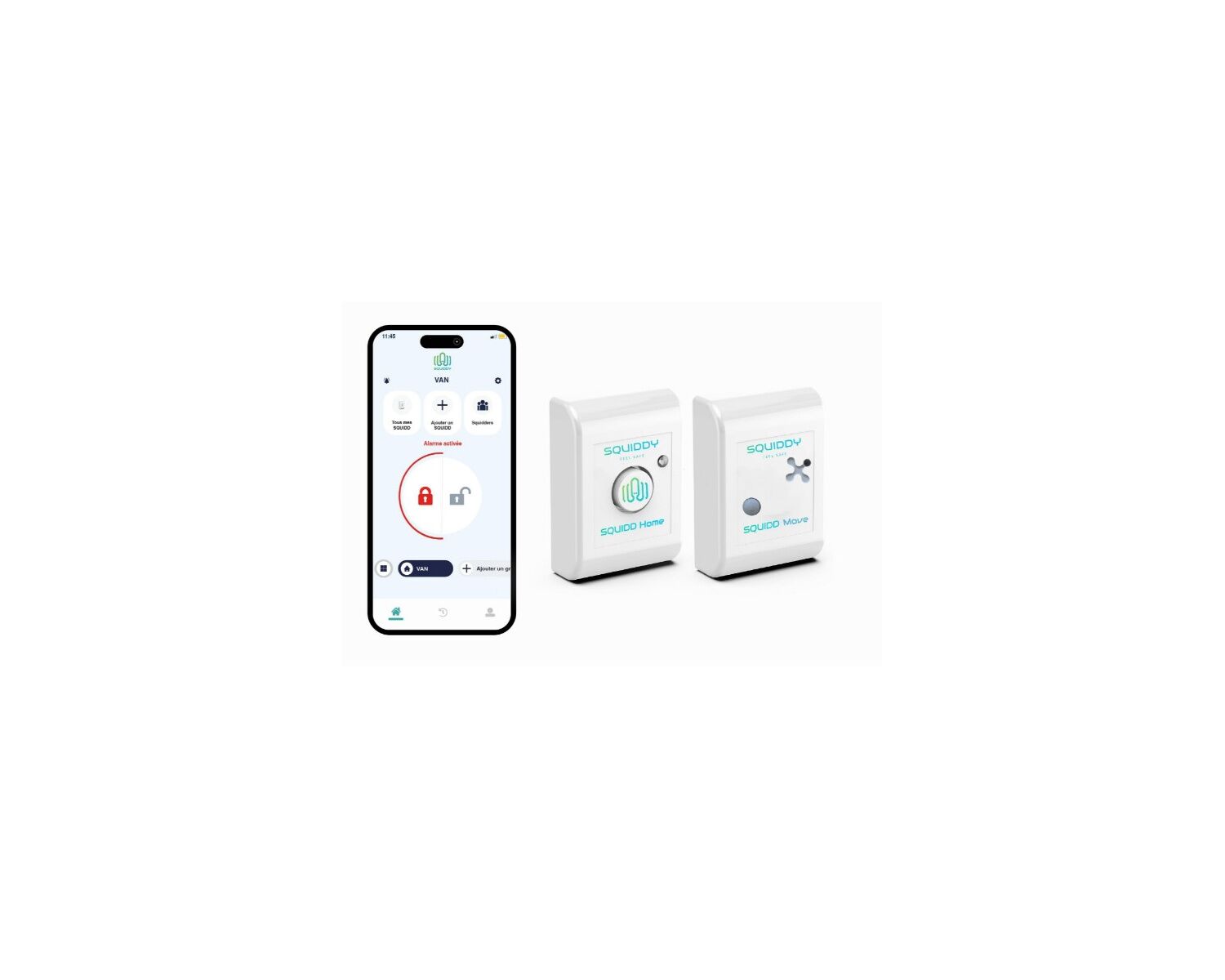 Alerte immédiates : dès qu'un mouvement est détecté, le Squidd Move transmet l'information à la centrale Squidd Home, qui déclanche l'alarme et vous envoie simultanément un SMS, un e-mail et un notification sur votre smartphone via l'application.