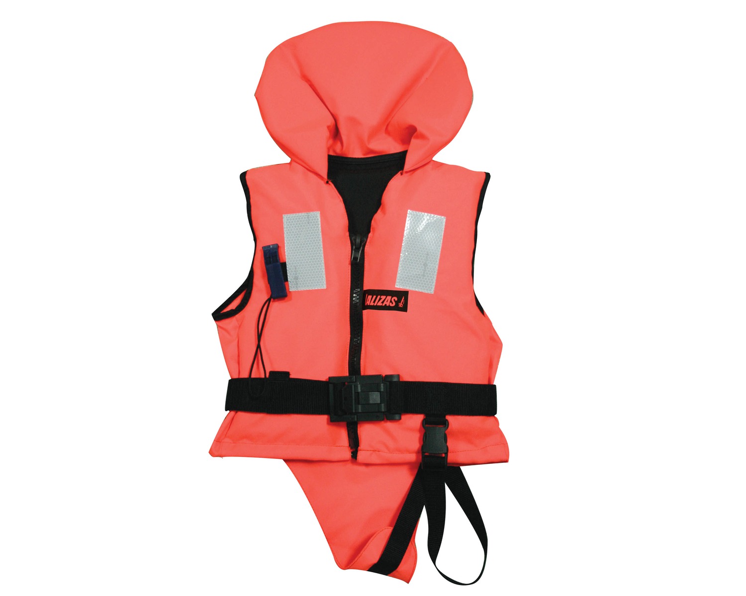 Une courroie ajustable sur la taille, une fermeture à glissière , un sifflet et des bandes retro réfléchissantes SOLAS viennent completer ce produit.