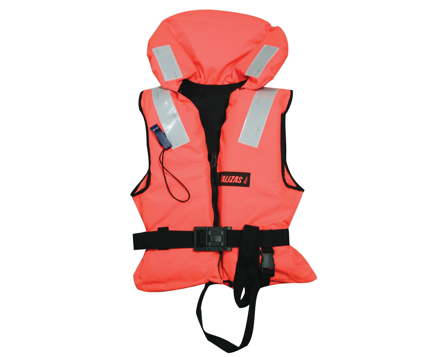Une courroie ajustable sur la taille, une fermeture à glissière , un sifflet et des bandes retro réfléchissantes SOLAS viennent completer ce produit.