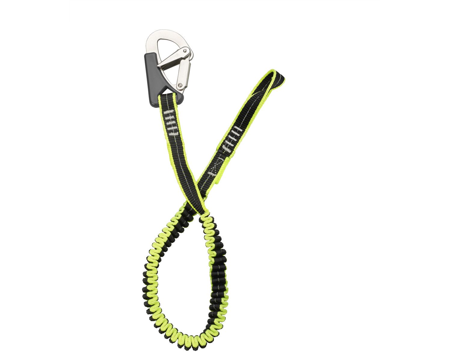 Longe élastique avec un mousqueton inox à double sécurité et fermeture automatique