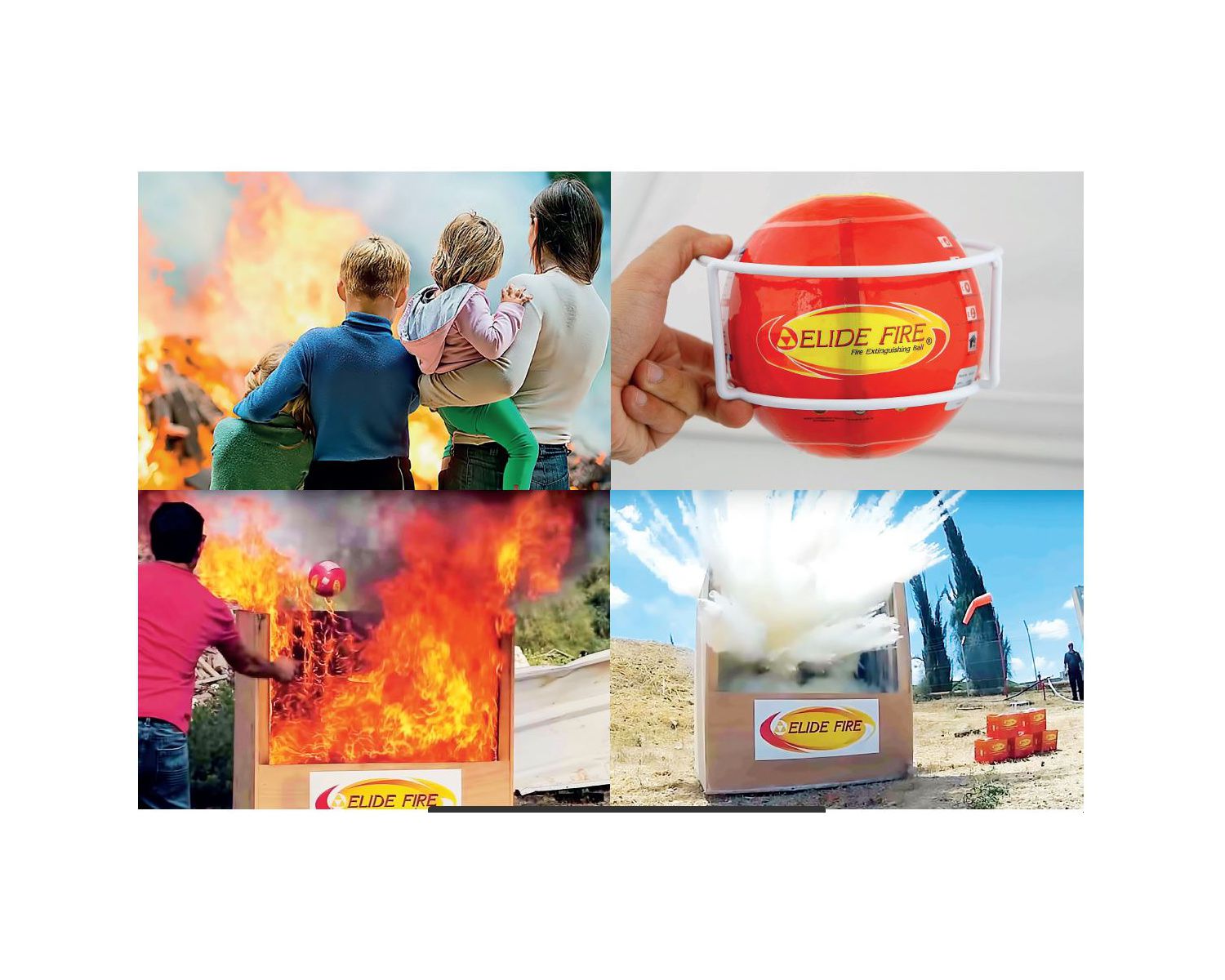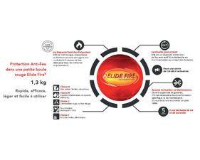 Elide Fire Ball fournit un moyen rapide, pratique et sûr pour éteindre un feu. Il suffit de jeter ou de rouler la balle dans le feu à une distance sécuritaire en protection active ou de l'installer dans un lieu ciblé à risque d'incendie. Elle joue alors un son rôle de sentinelle. L'opération est si simple que même un enfant peut stopper le feu avant qu'il ne se propage. Les avantages sont nombreux.