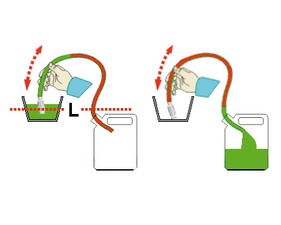 Pour transvaser tous les liquides sans énergie : diesel, essence, produits nettoyants, eau, eau de mer...