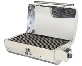 Barbecue au charbon de bois tout Inox. Il se fixe sur la plupart des balcons (diam 20 à 32 mm). :