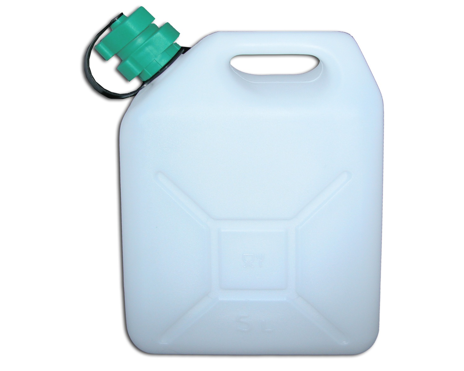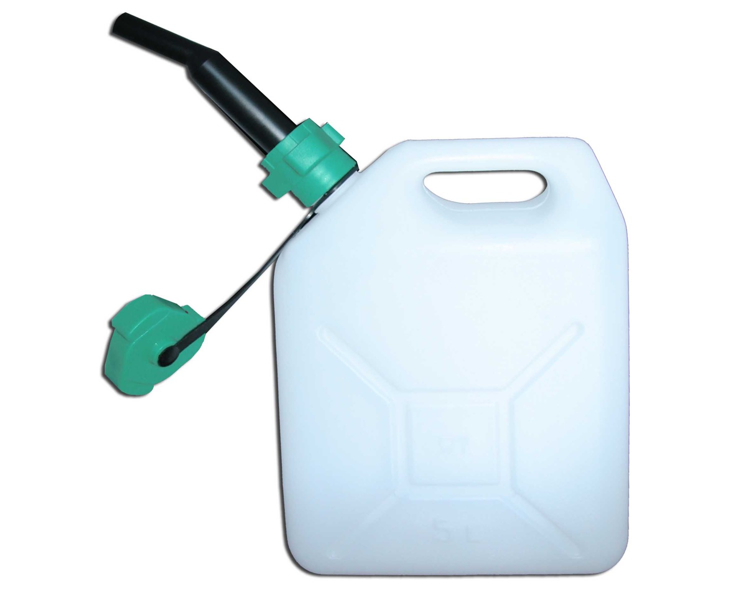 Jerrycans pour usage alimentaire, fabriqués en polyéthylène, avec bec verseur.