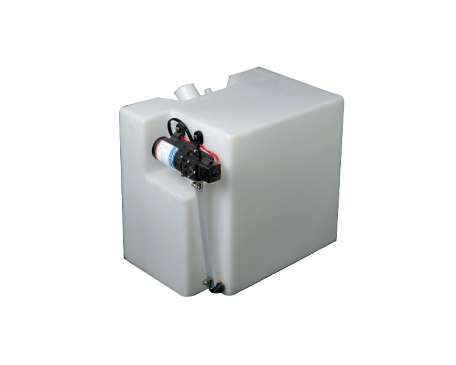 Kit douche avec réservoir en polyéthylène, avec pompe débit 3L/min 12V.