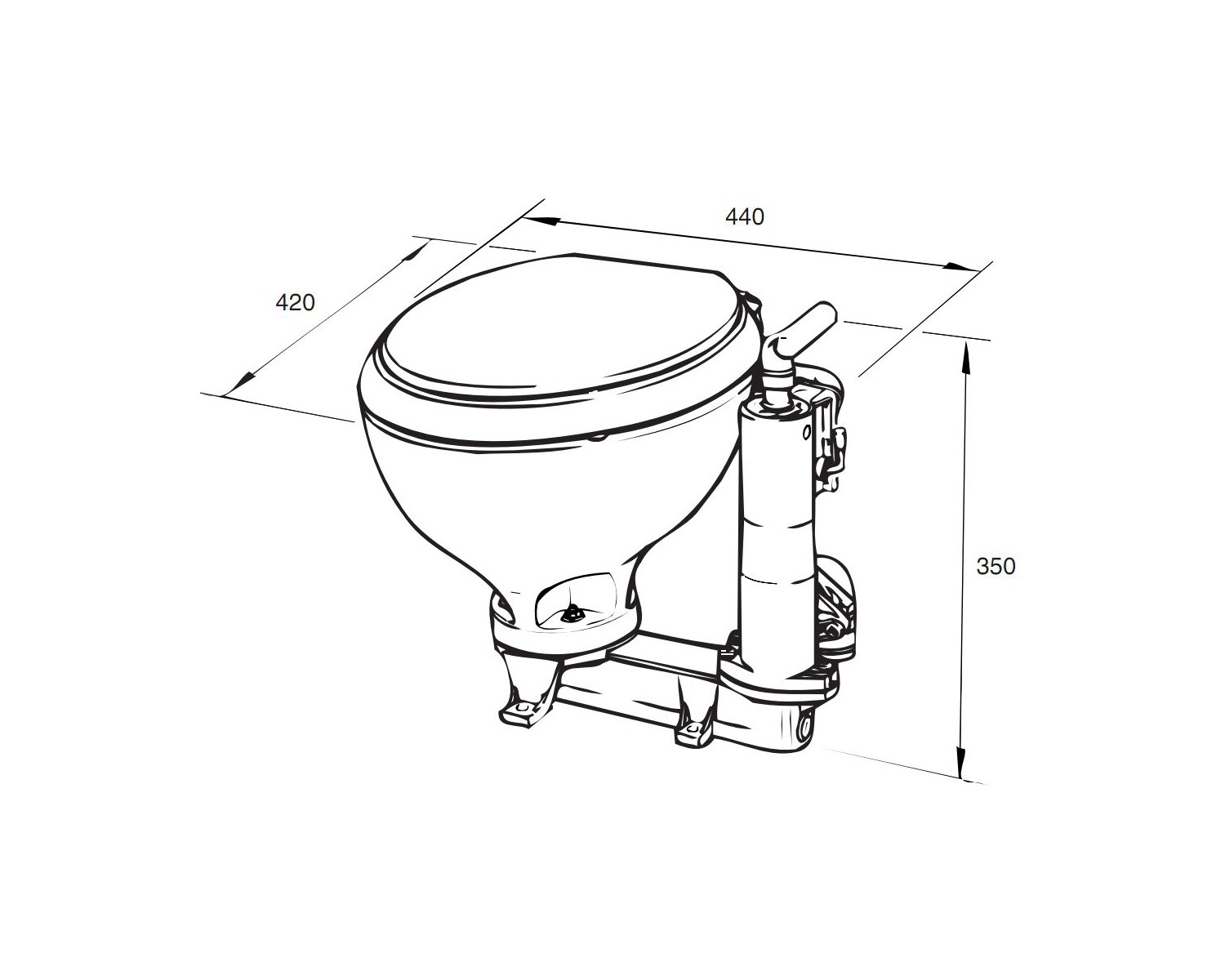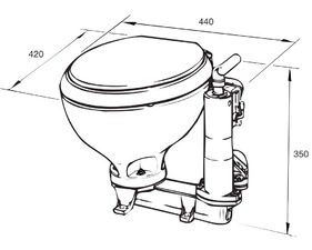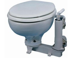 WC compacts avec pompe à main auto-amorçante, convient pour une installation en-dessous ou au-dessus ligne de flottaison. Cuvette en porcelaine, lunette et abattant bois. Très simple d'installation toutes les pièces sont faites de matériaux résistant à la corrosion.