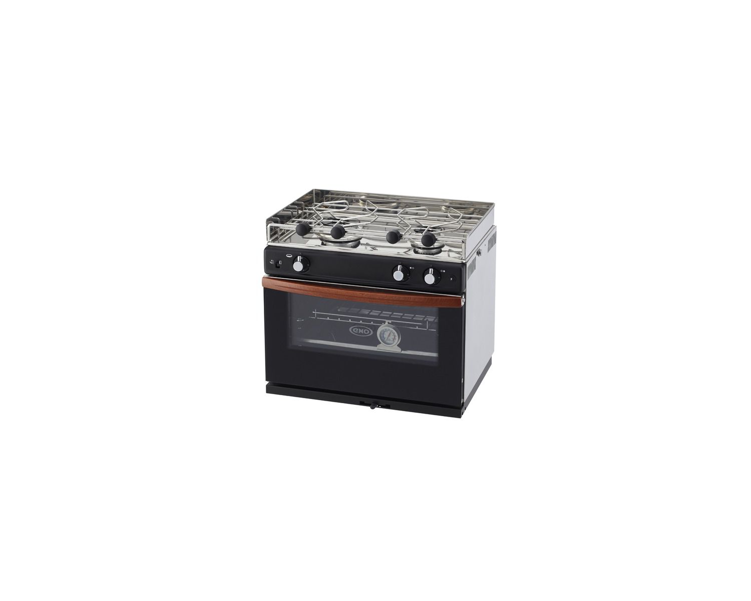 Réchaud four compacts largement apprécié pour son design et son ergonomie, les cuisinières Gascogne ont profité du relookage de la gamme des cuisinières compactes ENO pour gagner encore en qualité et en finition : manettes chromées intégrées, façade à embouti profond, gain de poids et par-flamme 3 côtés. Ils comportent une porte en double verre, d'une barre anti-roulis, d'un stabilisateur, de serres-casserolles, de grilles Inox et d'un système de vérouillage de la porte. Allumage éléctronique par piles (situées à l'arrière de l'appareil) pour les deux feux et le four.
