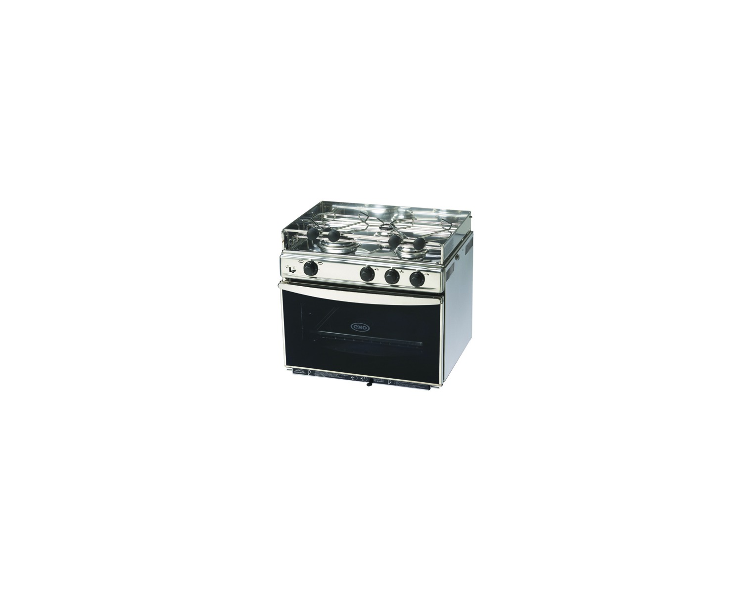 Réchaud four sur cardans. Sécurité optimale grâce à un thermocouple, une sécurité pare flamme arrière et le recentrage du bruleur rapide. Extérieur tout inox.