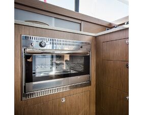 Compact, ce four encastrable au design en inox offre une grande capacité de cuisson.