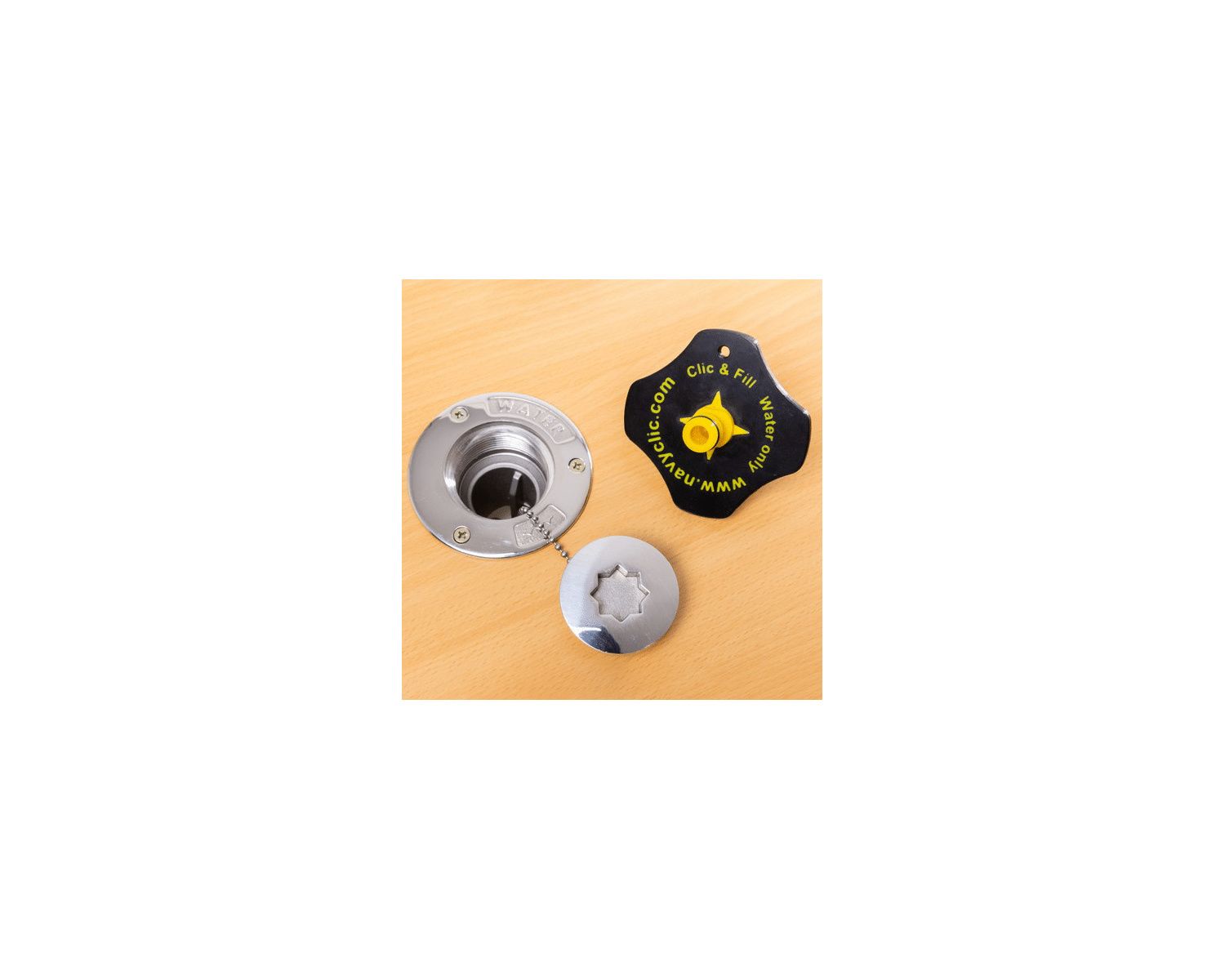 Le raccord dispose, à sa base, d’une empreinte de nable “étoile” pour desserrer et serrer le bouchon sur le bateau.