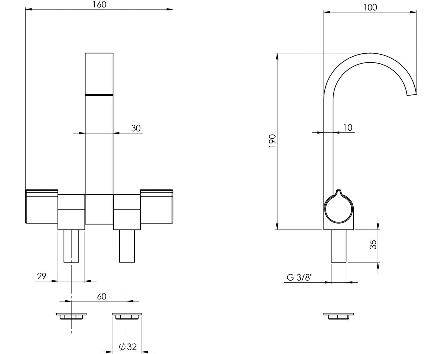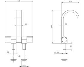Connexion mâle 3/8 ". Hauteur 3 cm.