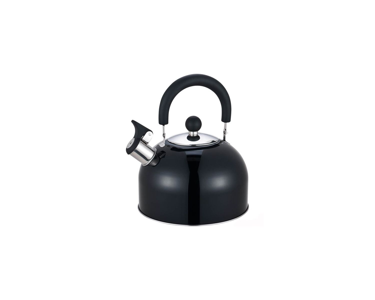 Bouilloire à sifflet métallisée noir avec poignée pliable