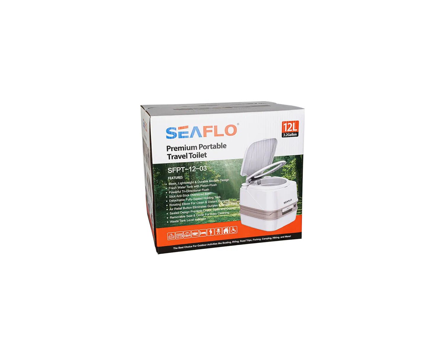 Les toilettes portables SEAFLO conviennent à une utilisation mobile telle que le camping, le bateau, la caravane, la cabine, la médecine, les enfants, la famille, les urgences, etc.